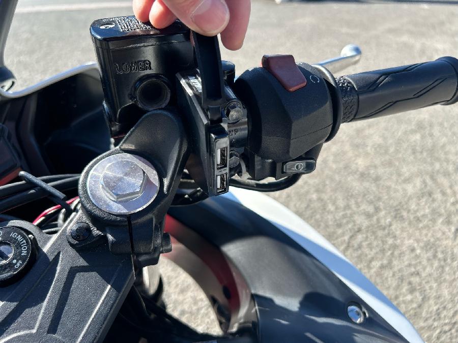 WR’S焼き色チタンスリップオンマフラー、デイトナ製USB2ポートタイプ装着