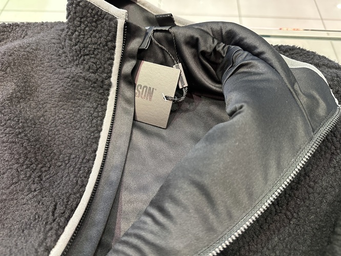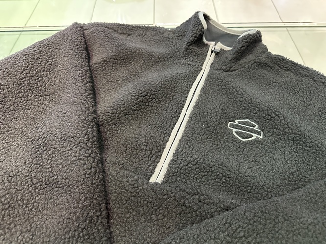 黒のシンプルなデザインですが、首元からジップにかけてのラインと胸元の刺繍をグレーでアクセントに。