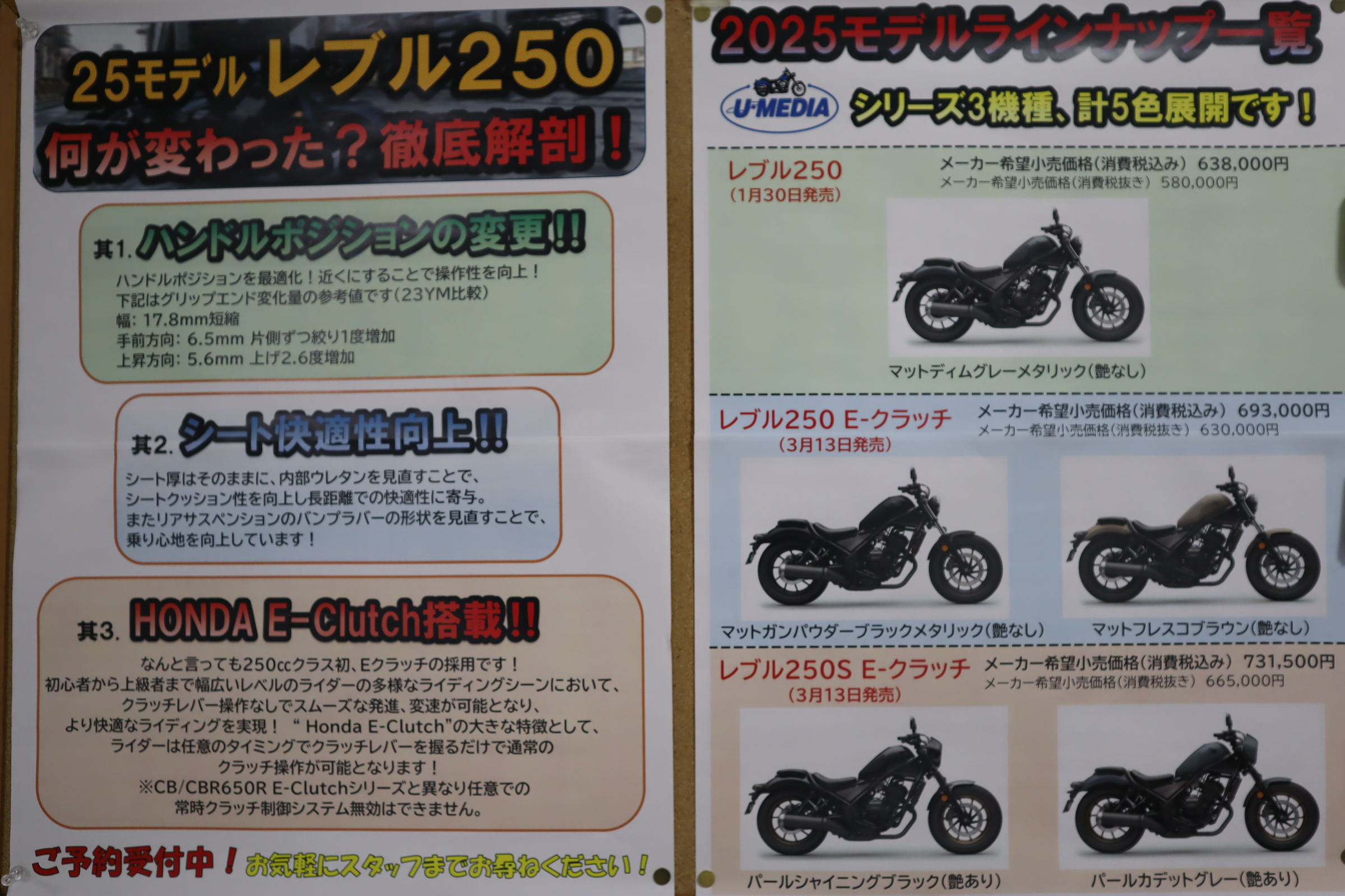 その他にも「レブル250E-Clutch」や「レブル250S E-Clutch」も予約受付中です!