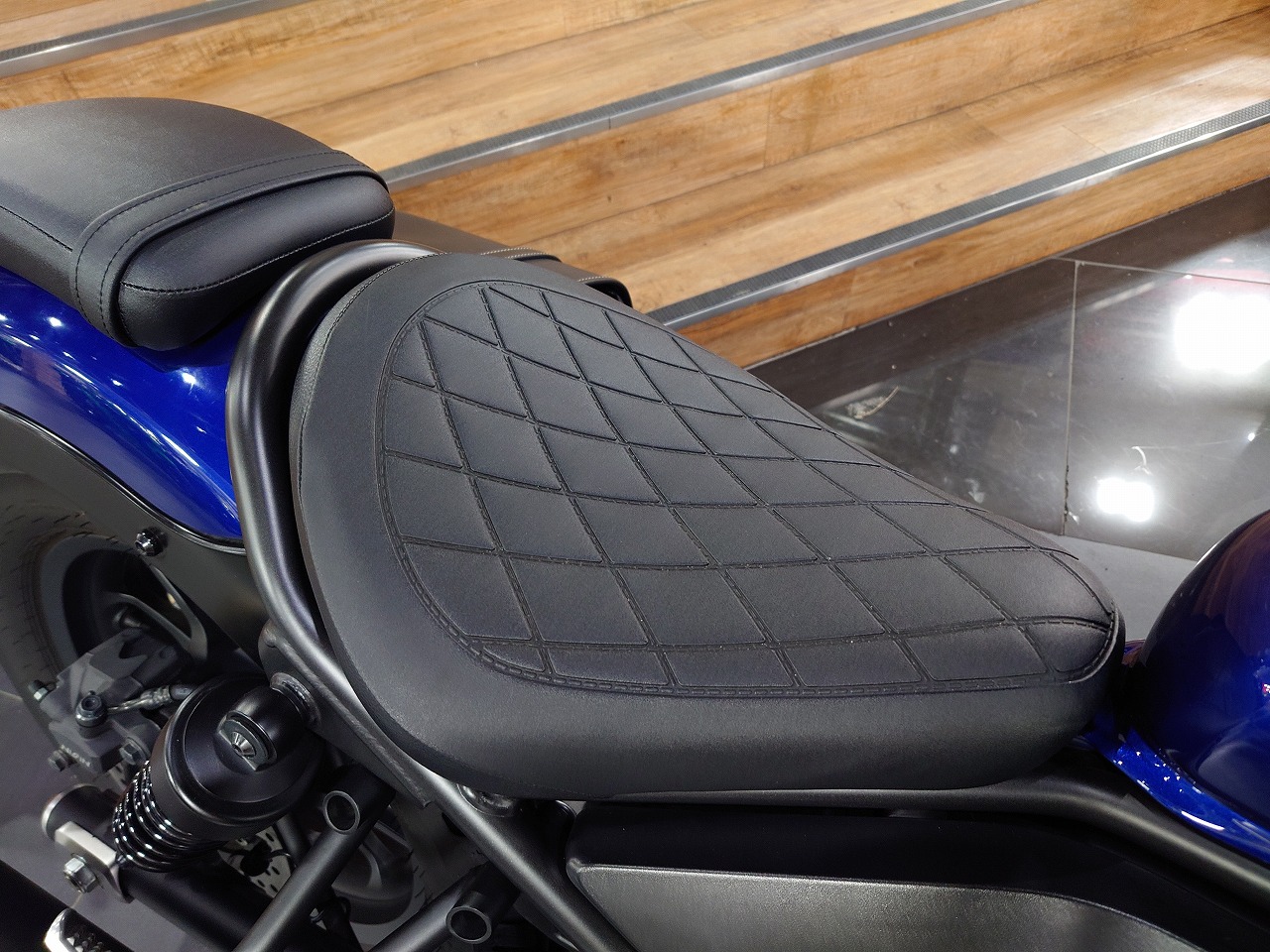 ヘッドライトカウル、ステッチ入りのメインシート、フロントフォークブーツが純正で装備!