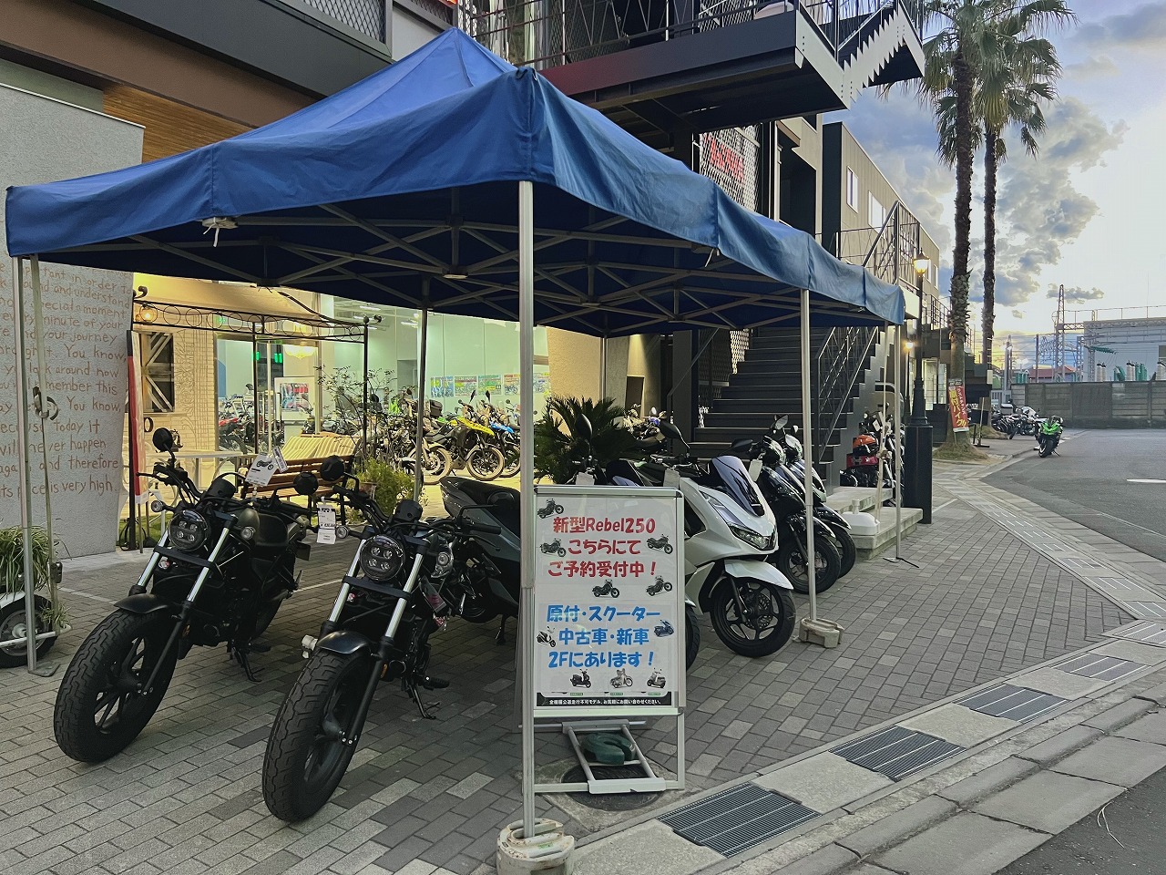 店舗の前にあるテントの下に新型と旧型を並べて展示してあります!