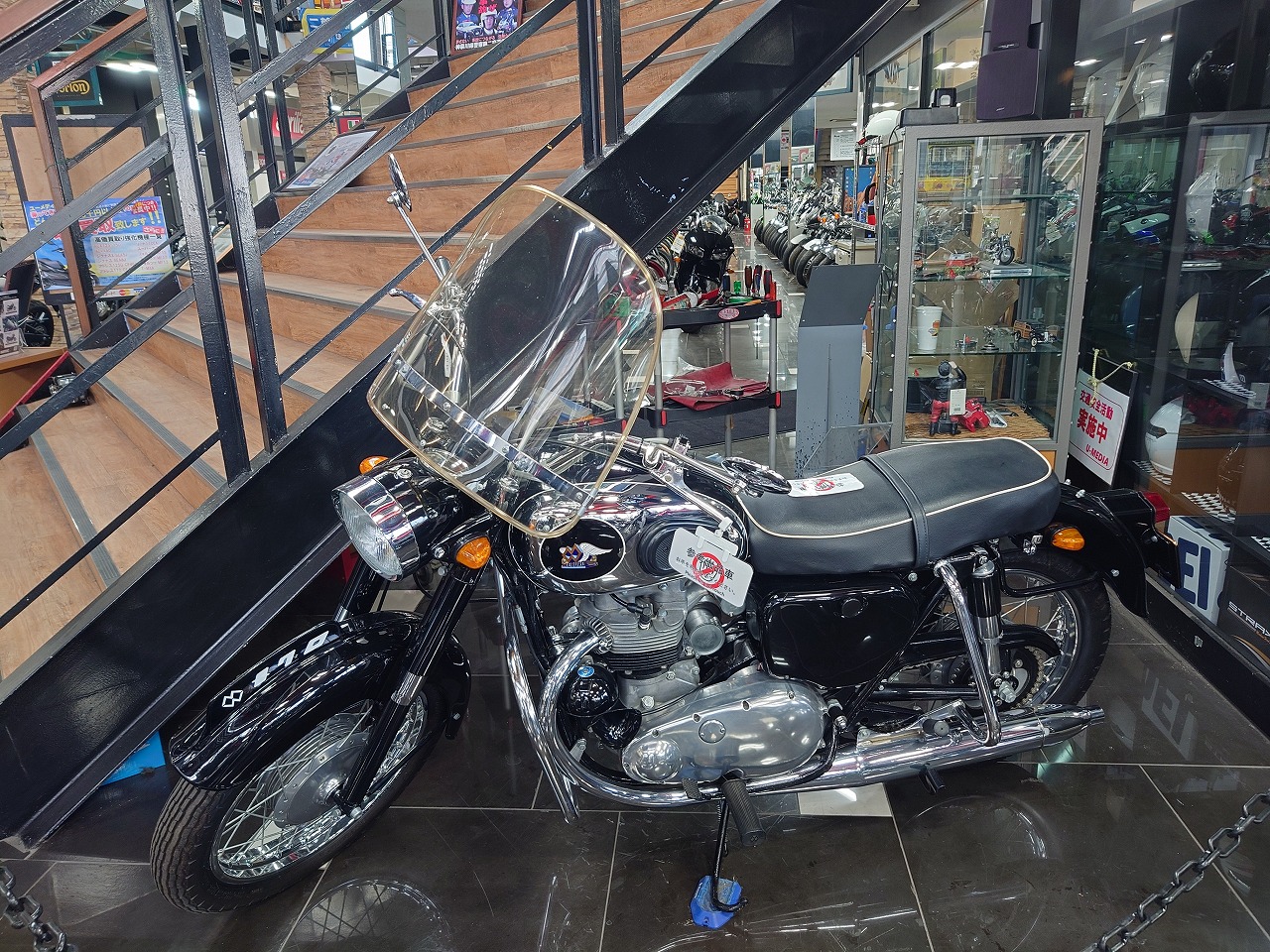 ユーメディア湘南も店頭入り口にて、W230、メグロK3、超超超激レアな1962年の初代メグロK1を展示中!