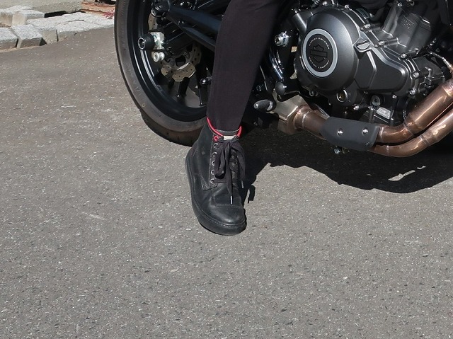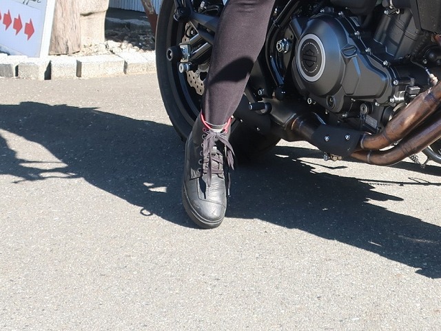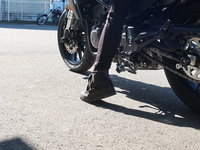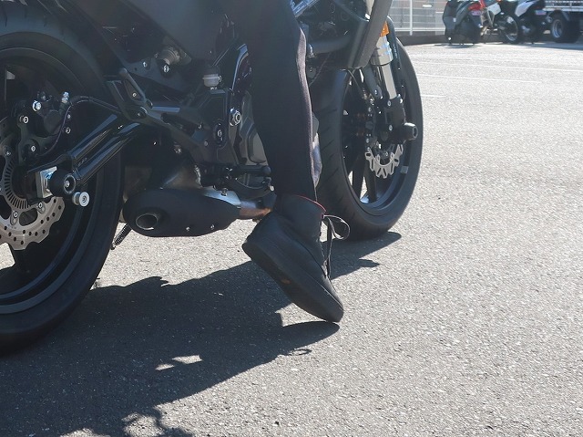 15mmのローダウンで変わるの?と思いがちですが、ギリギリの足つきにとっては全然違います。まだつま先には見えますが、足の付き方が違うのがおわかりでしょうか。