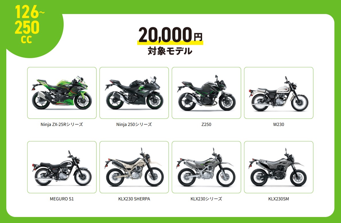 カワサキ正規取扱店にてキャンペーン対象モデル(新車)をご購入および車両の新規登録を完了した方が対象となります。