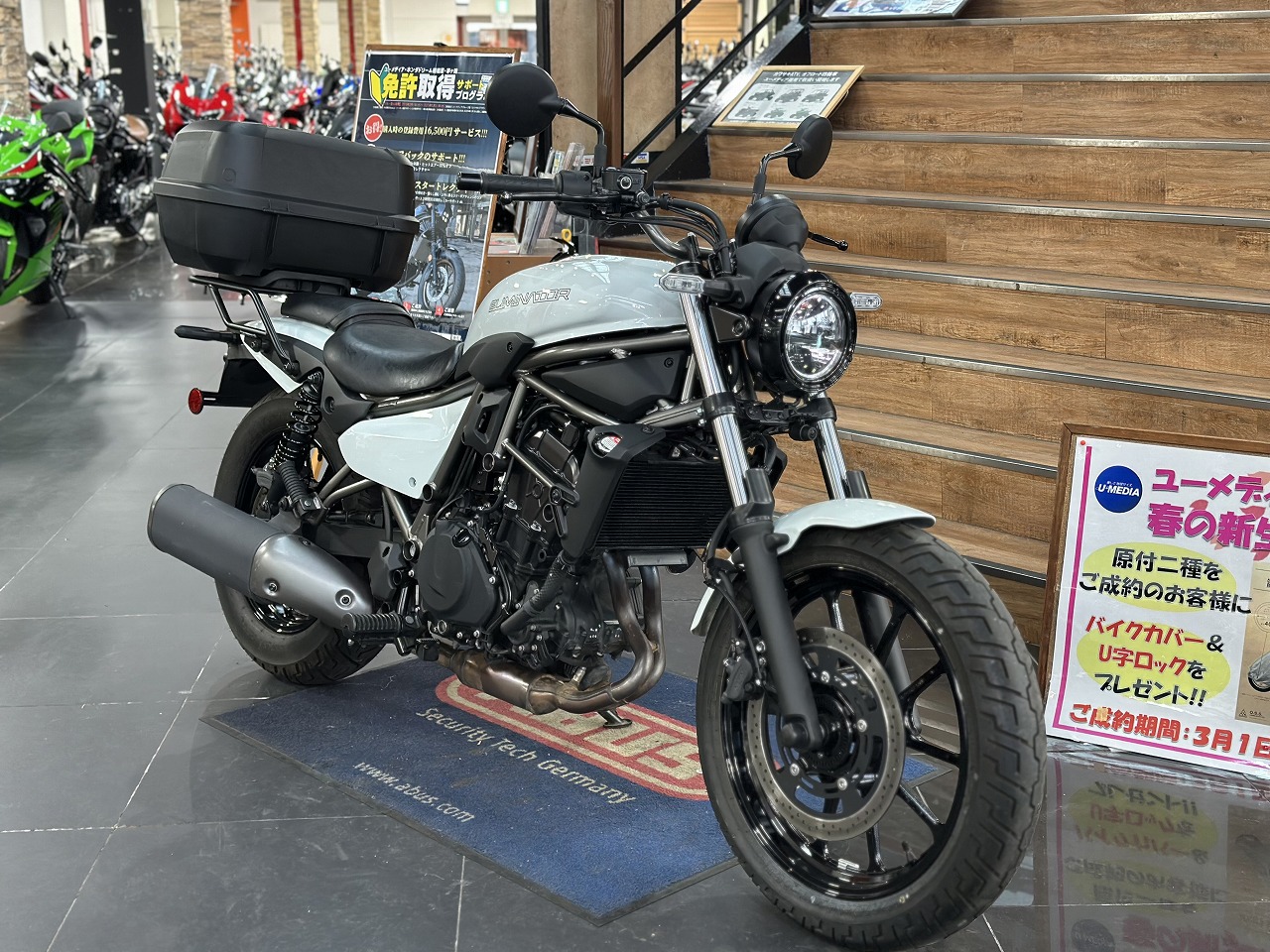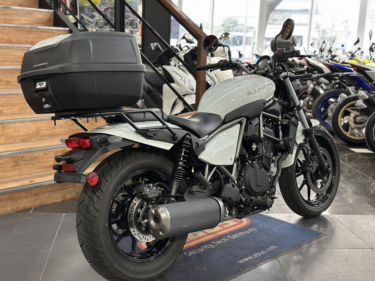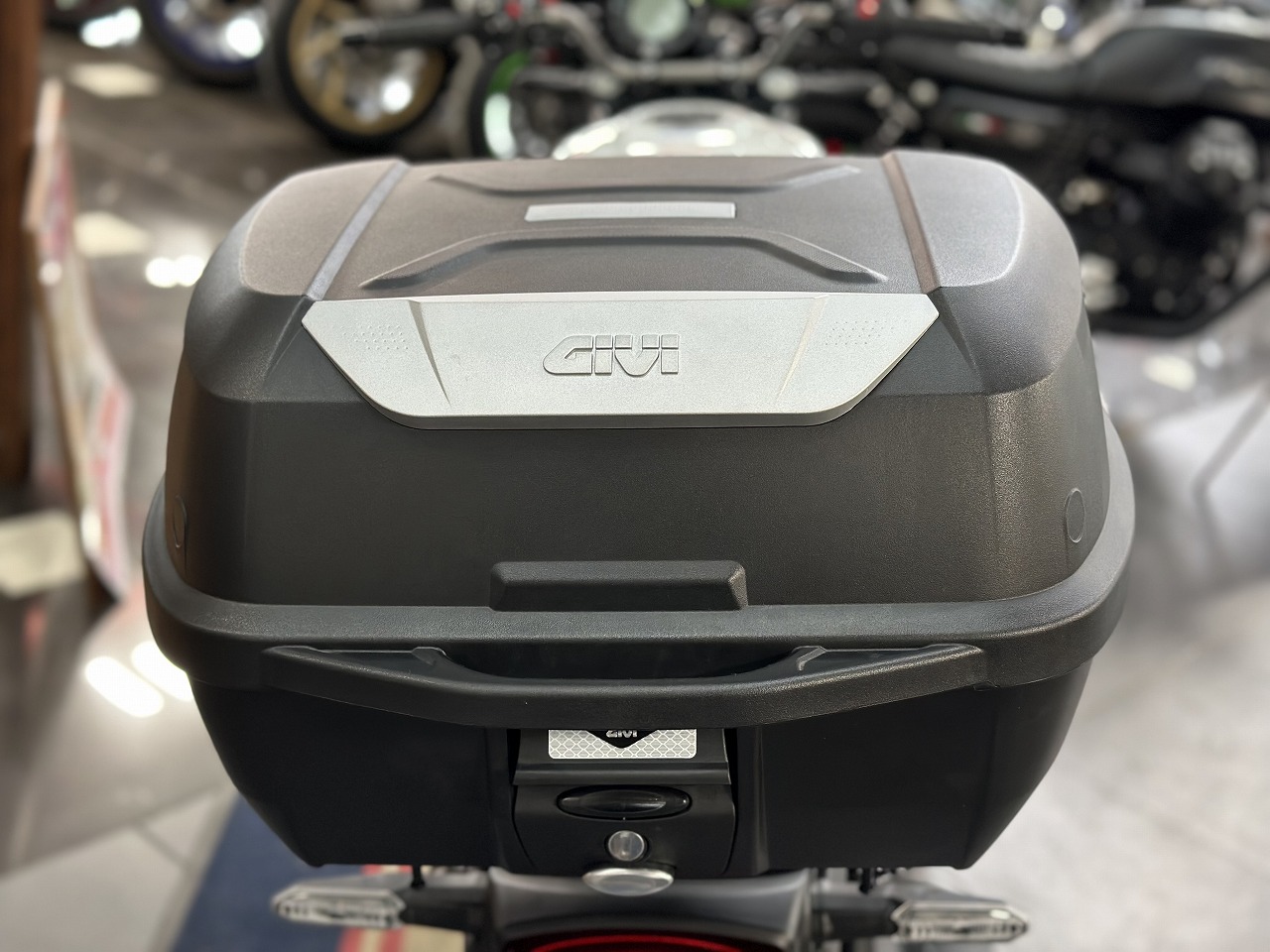 GIVIのリアボックスも装着!大きめのサイズですので、ヘルメットやお荷物がたくさん収納可能です。