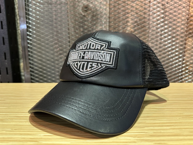 キャップはハーフメッシュタイプでフロント部分はレザーとの組み合わせ、コーディネートを引き締めてくれるアイテムです。