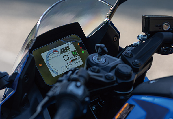 GSX-8R: フルカウルの装備により、車両重量は205kgとなっています。
