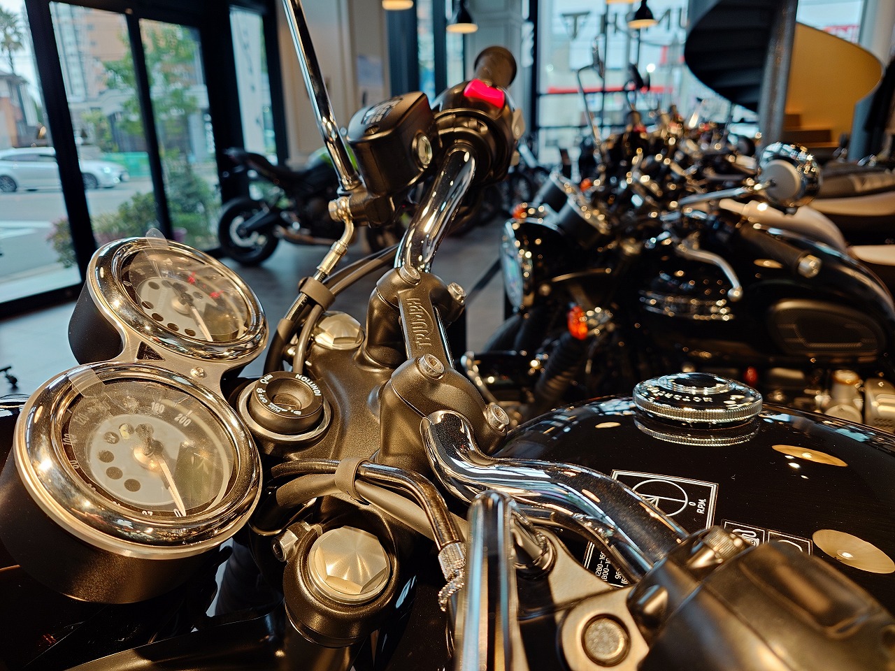 大人な【ボンネビルT120】は思い出の写真に華を添える、ジェントルなモデルです。