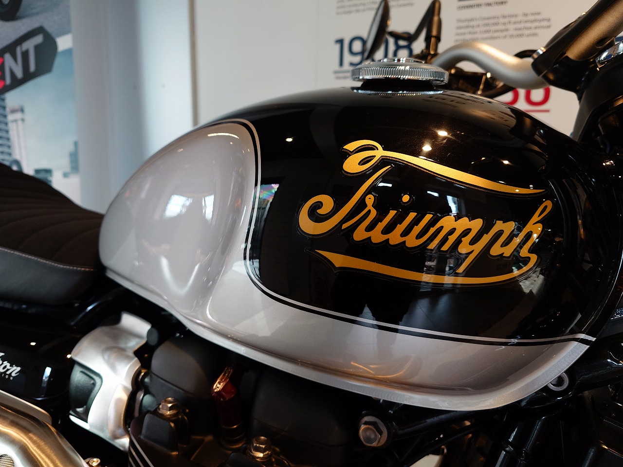 ゴールドであしらわれた「Triumph」のロゴが高級感を演出。