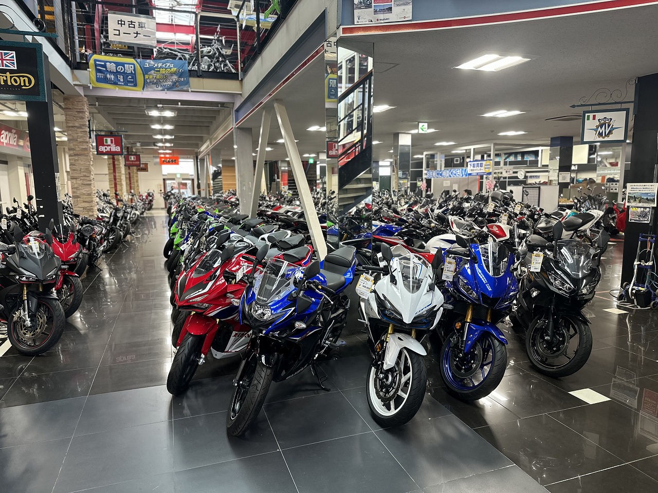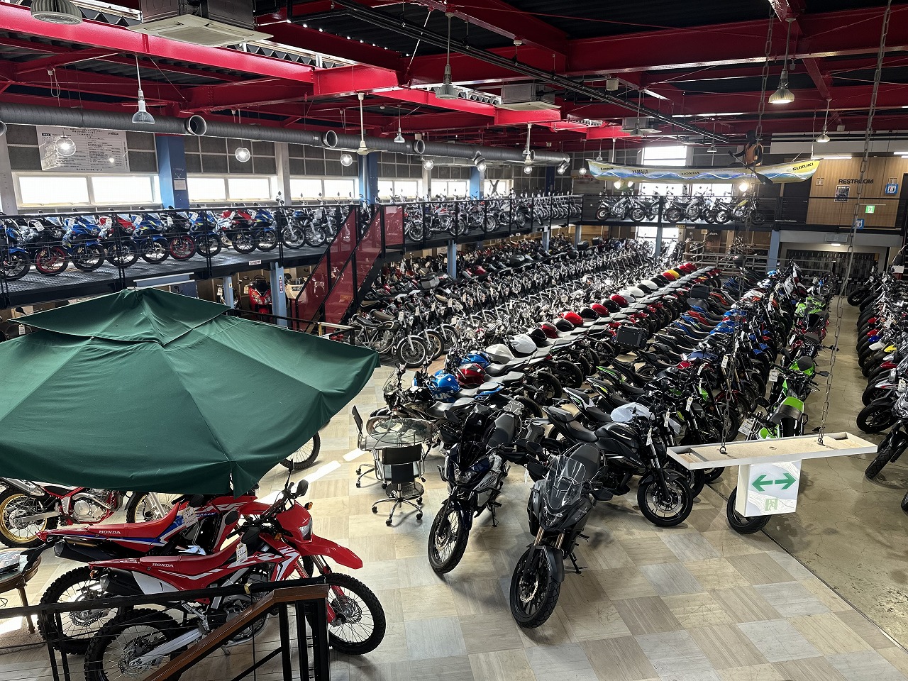 2階へあがると、オフロードバイクや、クラシックタイプの車両がたくさん!
