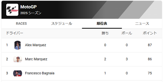 スプリントレースでは、マルケス選手が1位で勝利し、バニャイア選手は3位フィニッシュでしたので、