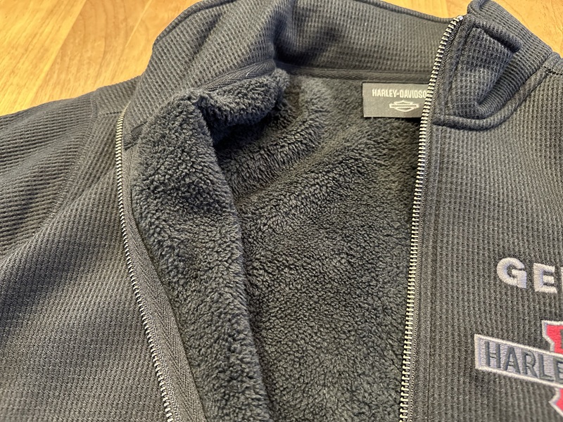外側はワッフル生地、内側はフリース素材で薄めの生地感ですがしっかり暖かい1着です。