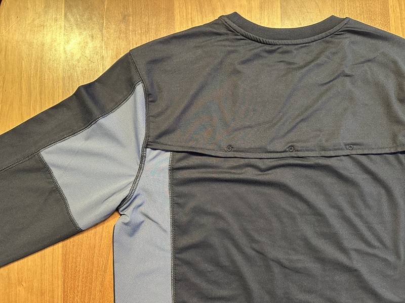 機能性抜群なロンTは、脇の下と後ろの首下部分にメッシュ素材を組み合わせ通気性を高め、ウィッキング素材により汗などを吸収しやすく快適な着心地と抗菌効果もあります。