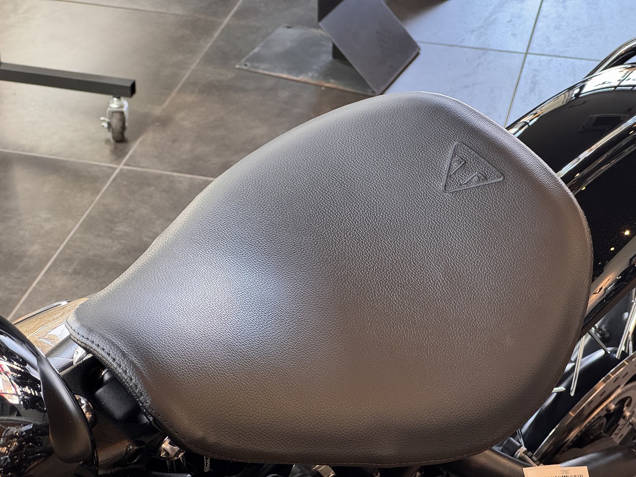トライアンフのロゴがエンボス加工されたブラックのプレミアムレザーシートは、快適性と特別感を提供します!