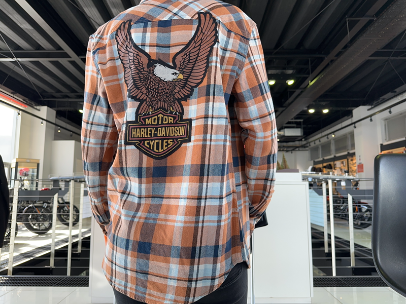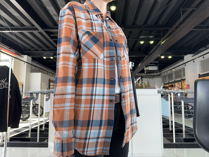 2025.04.21 SHOPハーレーダビッドソン横浜 【新入荷】爽やかチェックシャツ! こんにちは、石関です。本日は新作のチェックシャツをご紹介!背中の大きなイーグルが特徴的なオレンジチェック。爽やかな色味で今の季節にぴったりです。少し厚手の生地なので羽織にもおすすめ。この時期の色物はちょうどいいです。#96393-25VM / ¥16.681-皆様のご来店お待ちしております!