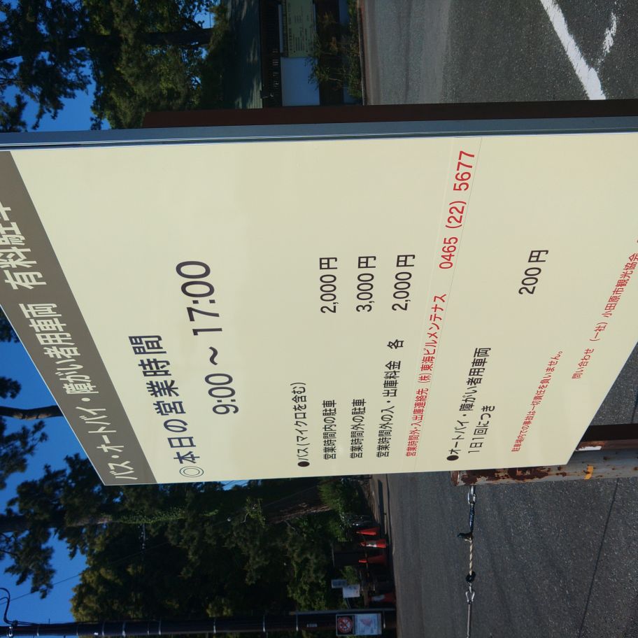 正面の広い駐車場に、バイクは200円で停められます!チケットを買い、だいたいの滞在時間を伝えて散策へ
