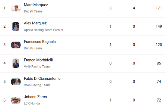 順調にマルク・マルケスはポイントを増やして現在順位は1位!