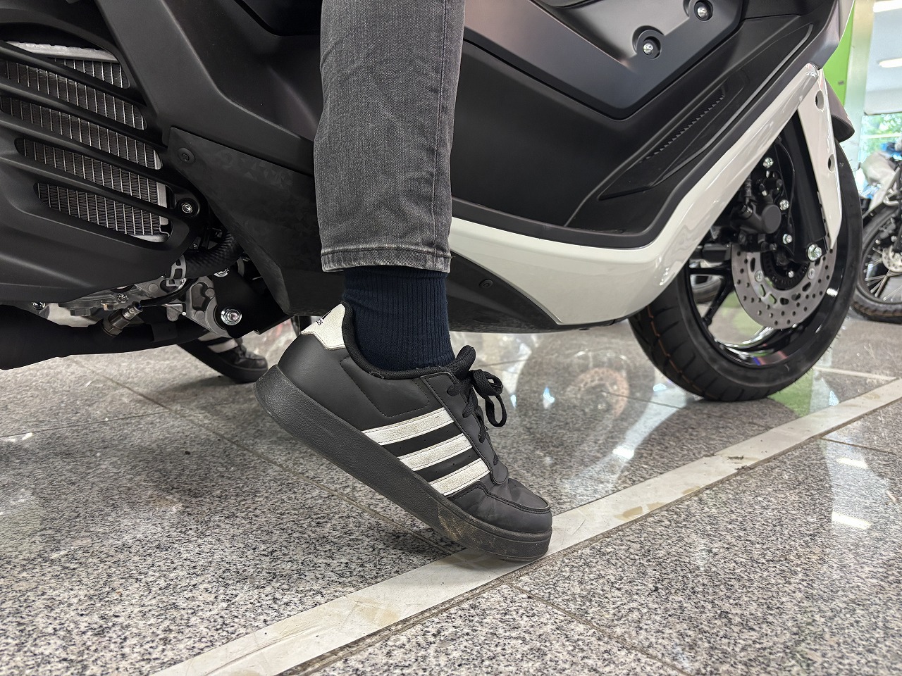 踵は浮いてしまいますが、車重が132kgと軽めの為、初心者や女性でも乗りやすい1台となっております☆