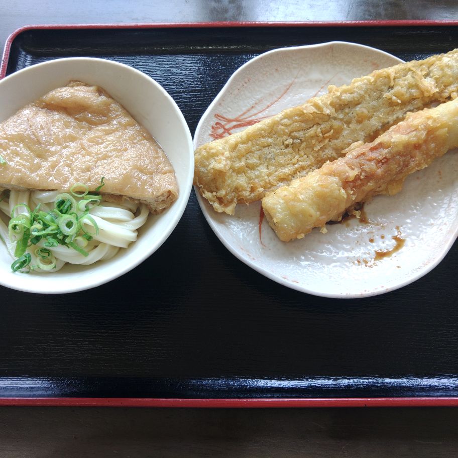 私はここのお店のうどんが一番好きな味でした。甘いおあげの上にだし醤油をのの字でちゃっとかけ、あげ、うどん、ねぎ、の順番に食べたらもう天国です。キス天もちくわ天もボリューミーで衣も中身もとってもおいしい。うどん屋さんめぐりは2軒の予定でしたが、美味しすぎて急遽3軒に増やしてよかった。そして3店とも小にしておいてよかった。