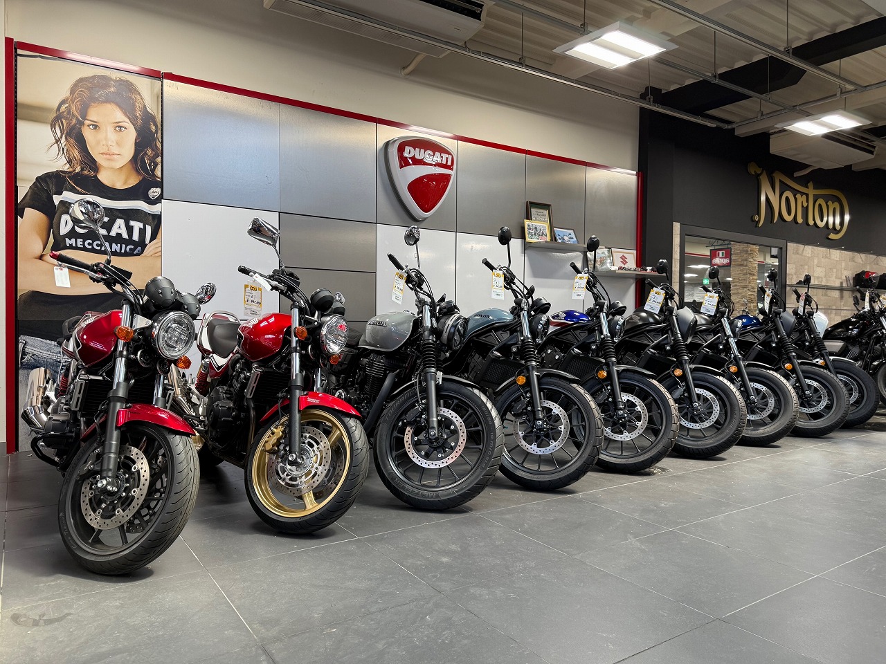 、GB350、CB400、フルカウル色々比較して見れるような配置にいたしました!!