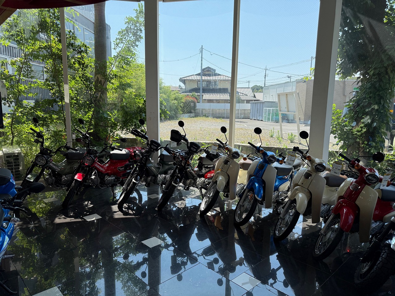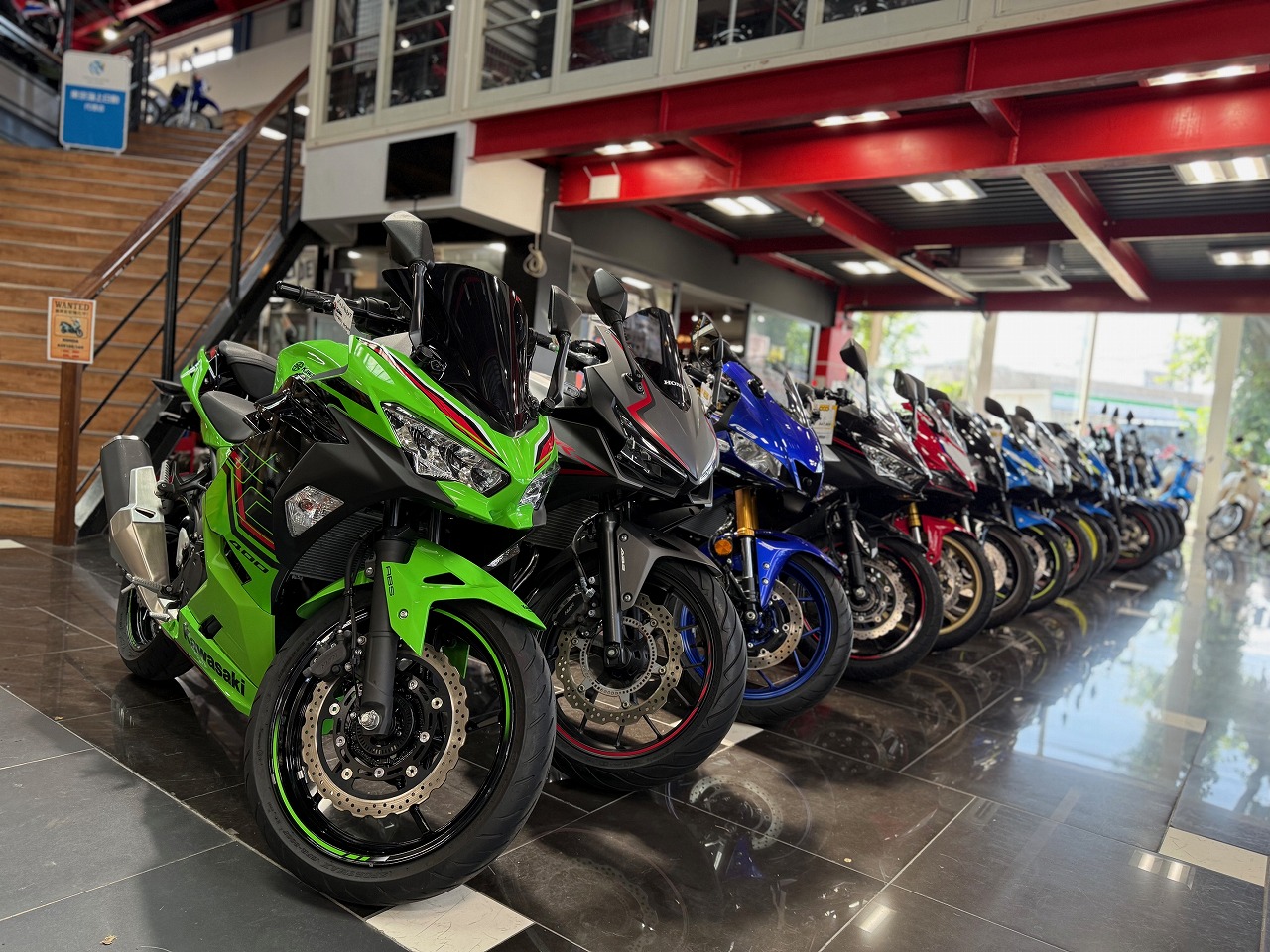 車両間隔が狭いので跨りたいバイクありましたらお近くのスタッフまでお気軽にお声掛けください