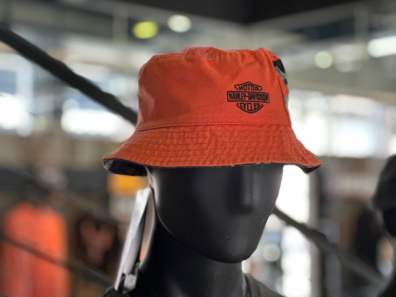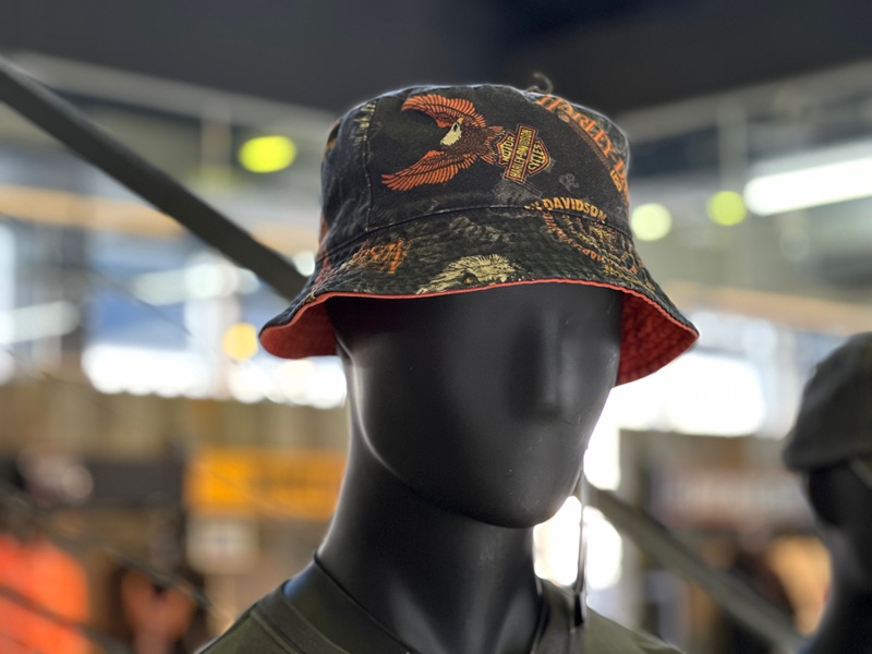 新作シャツと同じハーレーロゴの総柄デザインのバケットハット。
