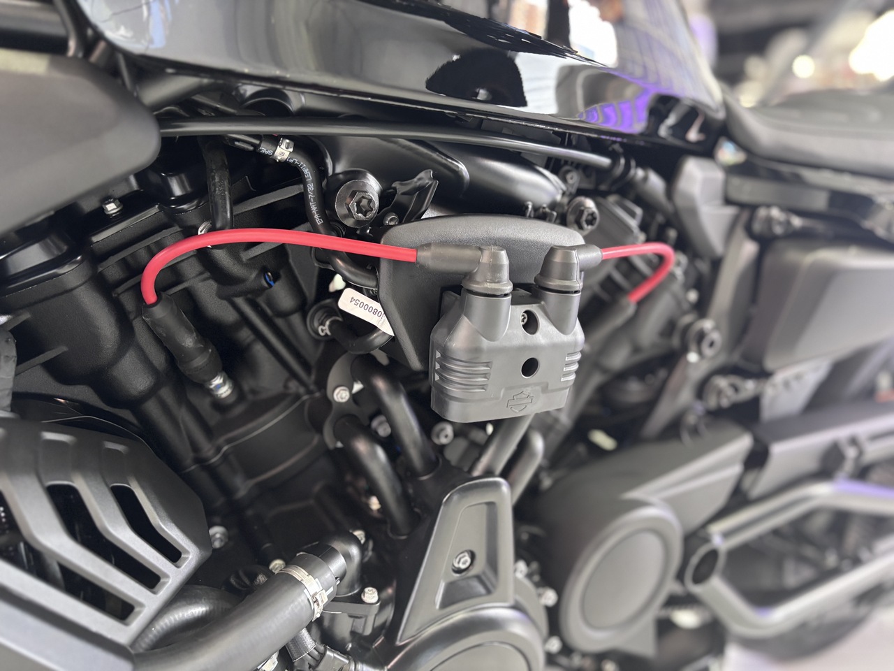 プラグコードは従来の黒から赤に変更。エンジン上側のカムカバーにある「HARLEY DAVIDSON」の赤文字とさりげなくマッチしてます。
