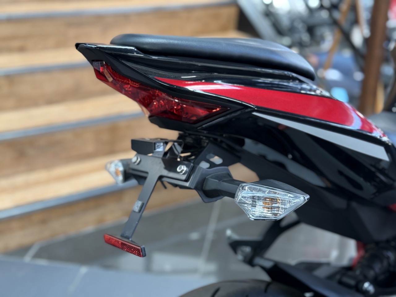 カスタムはグリップ、レバー、フェンダーレスでフレームの赤色と揃えていて