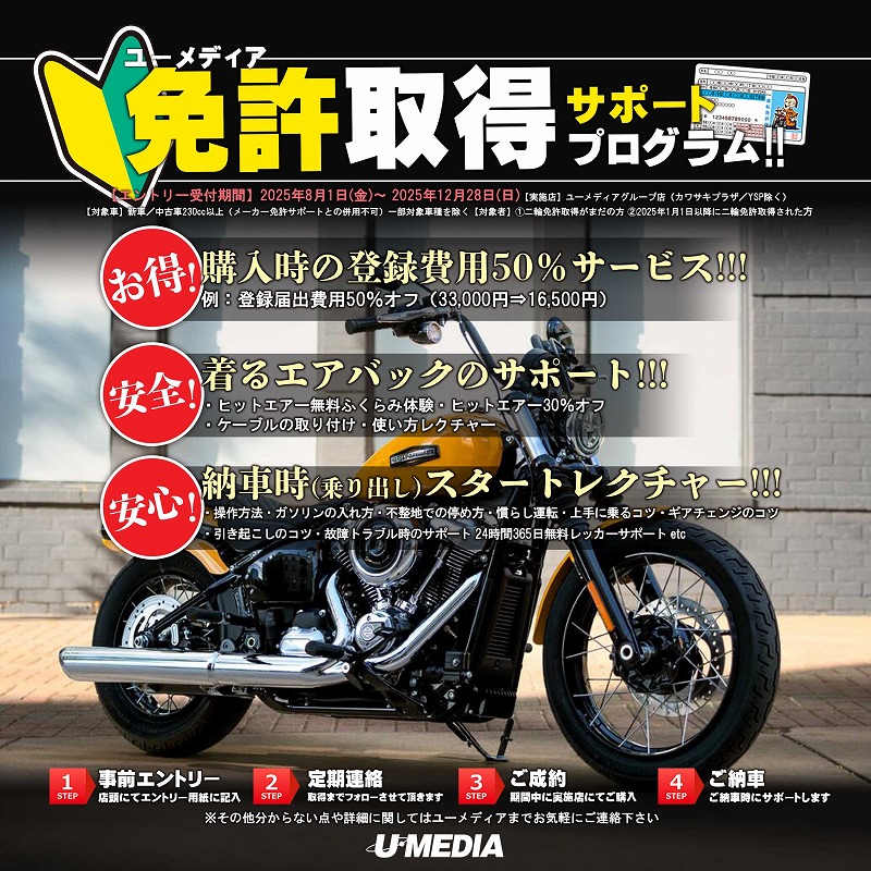 【対象車】新車/中古230cc以上(メーカー免許サポートとの併用不可) ※一部対象車種を除く
