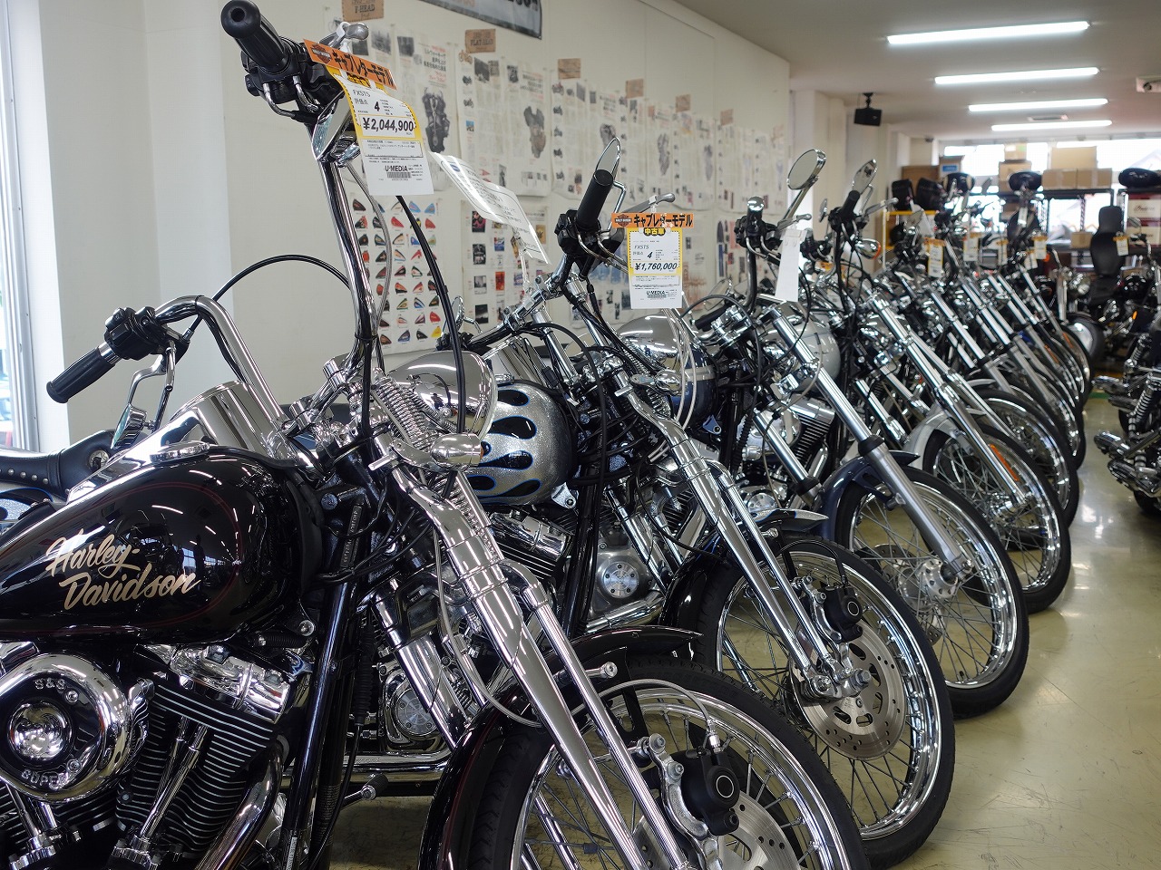 当店は、100台のハーレー中古車両を展示販売しております。