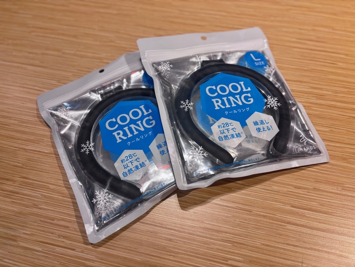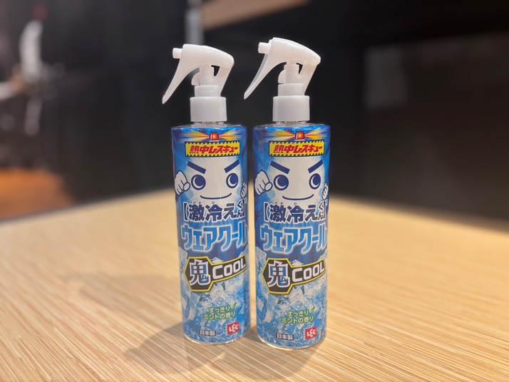 服にスプレーするとひんやりする「激冷えくん」と「クールリング」をご用意しております。