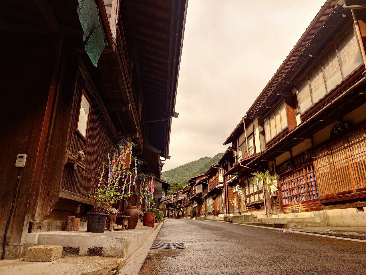 朝露に濡れた奈良井宿の街並みはとても良かったのですが、早すぎてどこも開いていませんでした!