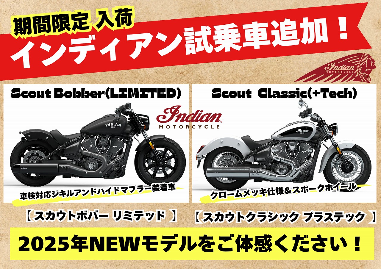 9月より期間限定で新たなインディアンの試乗車が追加になりました!