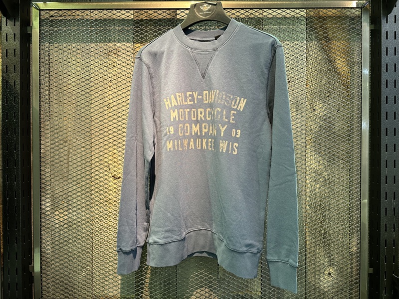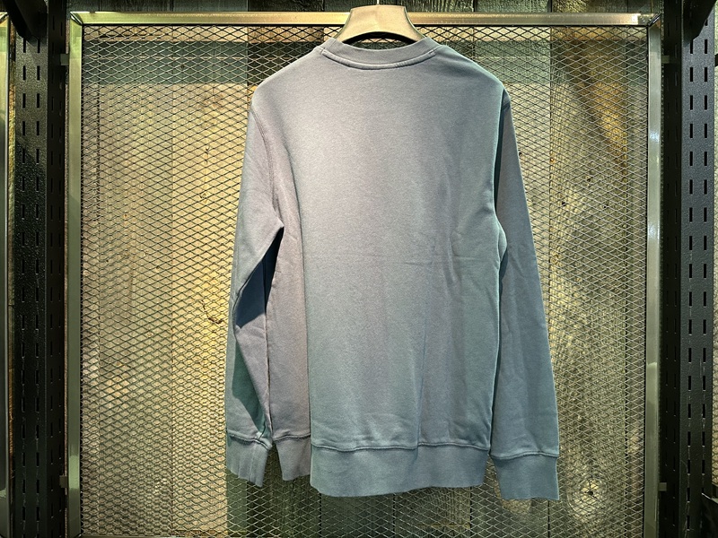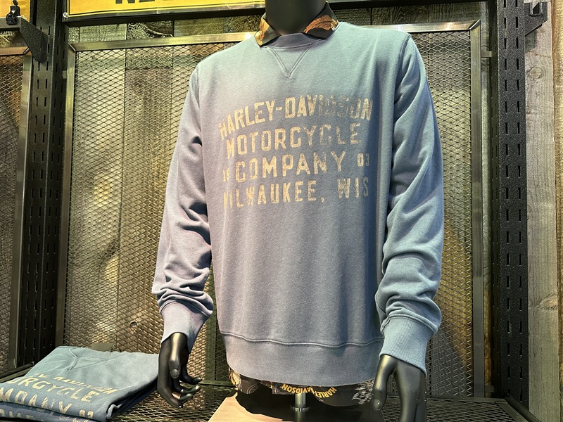 くすみブルーが印象的なスウェットは色や素材がまさに今の時期にぴったりです。