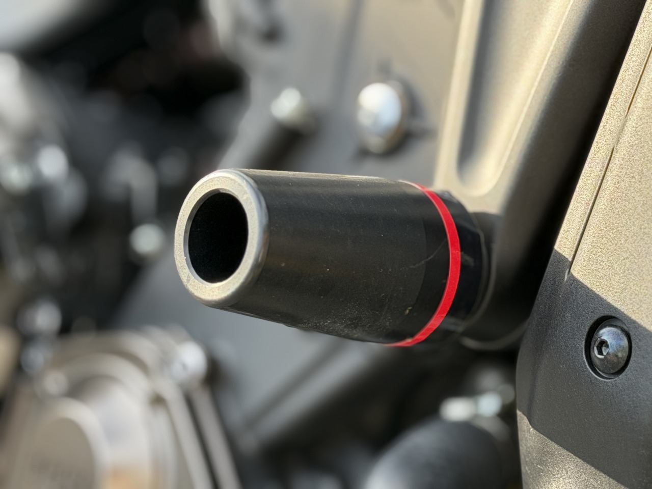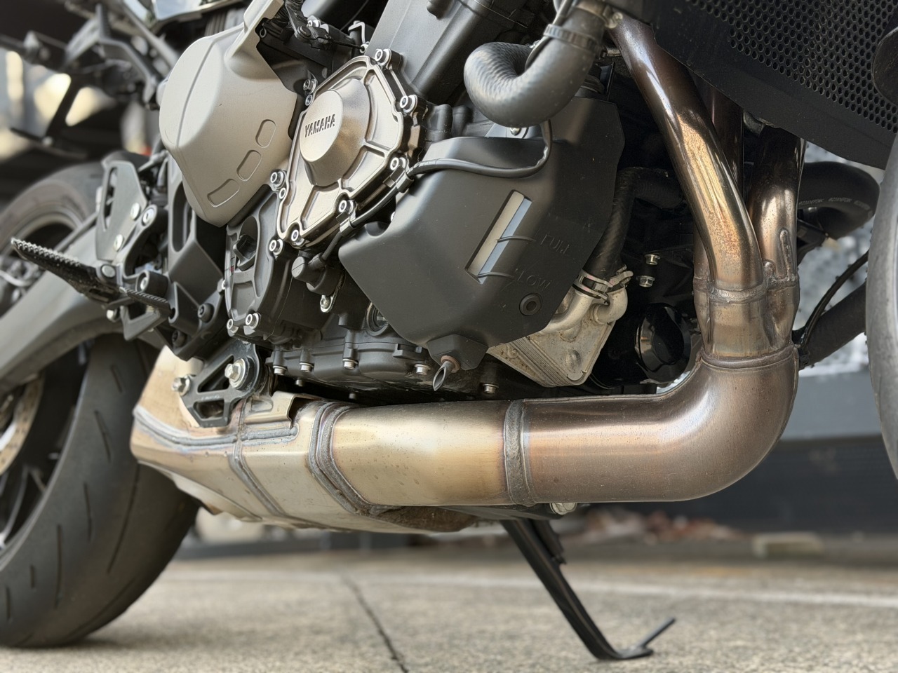 マフラーは純正で、排気音を地面に反響してライダーの両耳にサウンドが届く、ヤマハ独自の設計です。