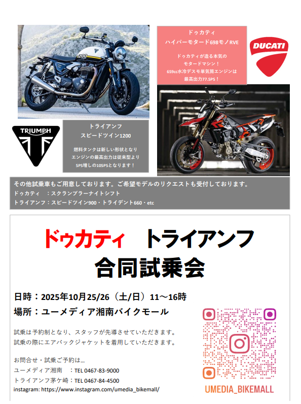 トライアンフ スピードツイン1200試乗車作成完了のご報告!