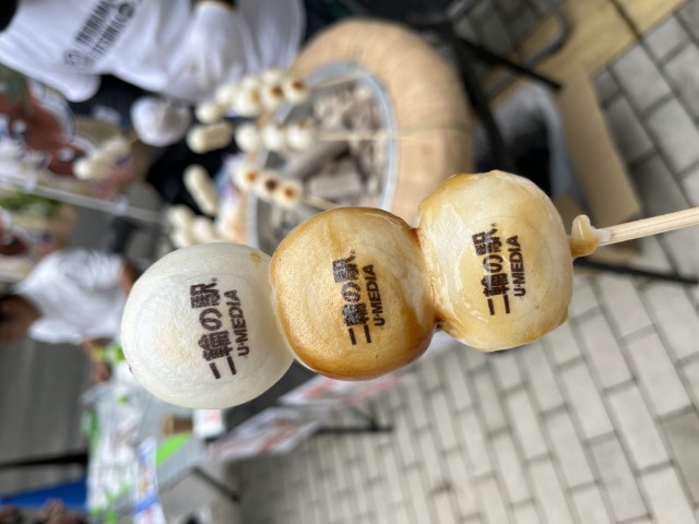 U-MEDIA二輪の駅が焼印された可愛いお団子は必見です!