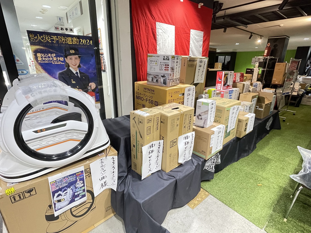 バイク用品はもちろん、人気の家電製品、おもちゃ、食料品など、多くの商品が用意されます。