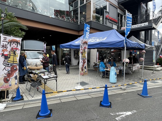 またフランクや豚汁などのケータリングや、白バイ展示、ヘルメットのコーティングサービスなど、いろいろな出展もございます。