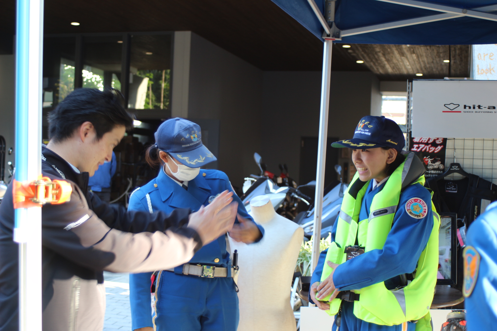 また、白バイ隊や弊社スタッフが通勤時には全員が着用している着るエアバッグ「ヒットエア」も全店で取り扱いしておりますので、