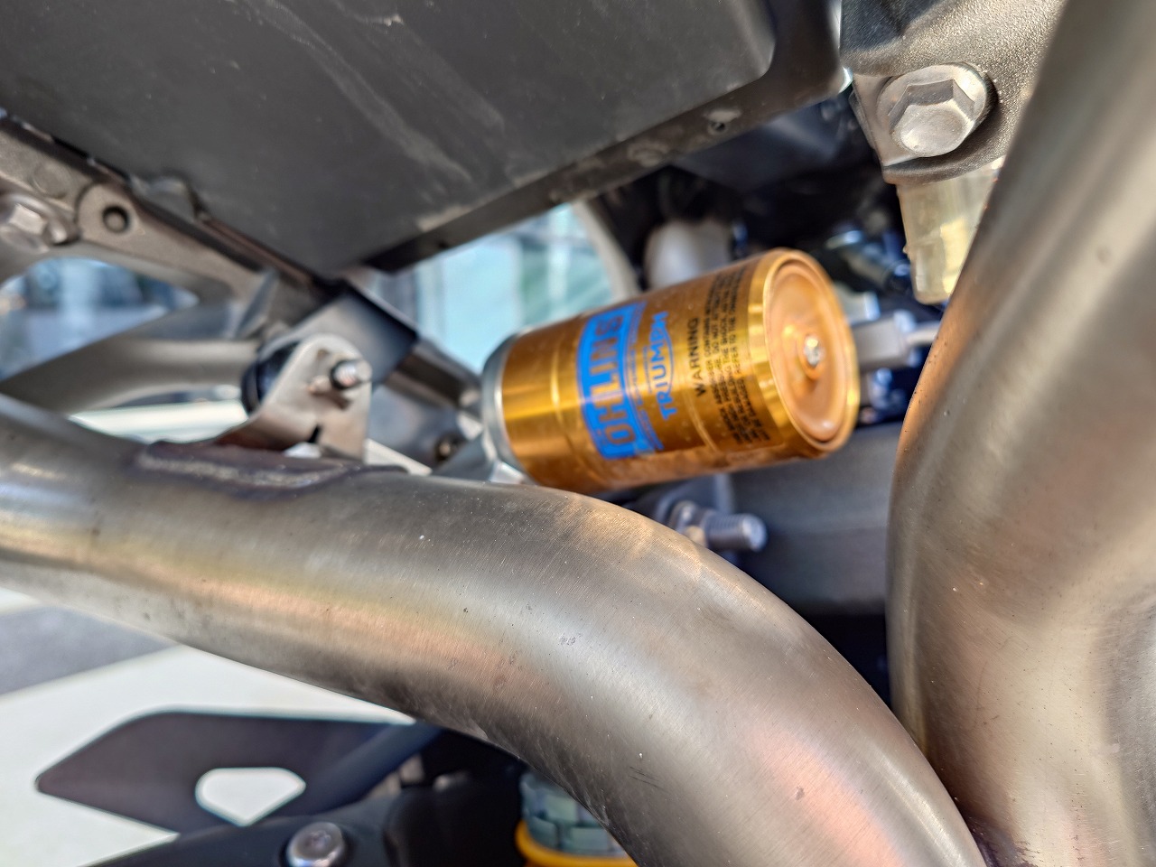 サスペンションも前後ともにオーリンズサスペンションを装着し、フェンダーなどはカーボンを使用。