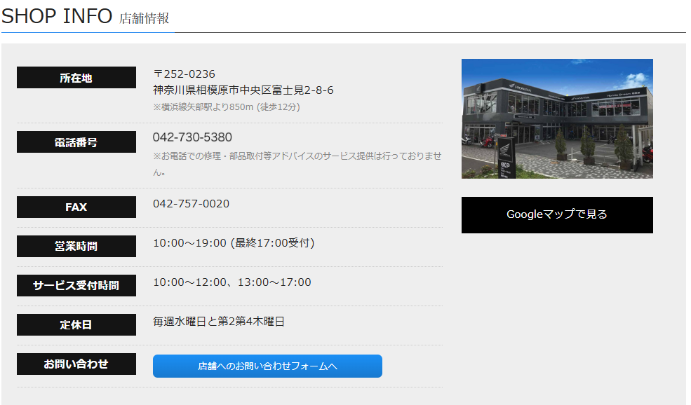 なお、当社系列店である ホンダドリーム相模原店 のご紹介・ご案内は可能です。