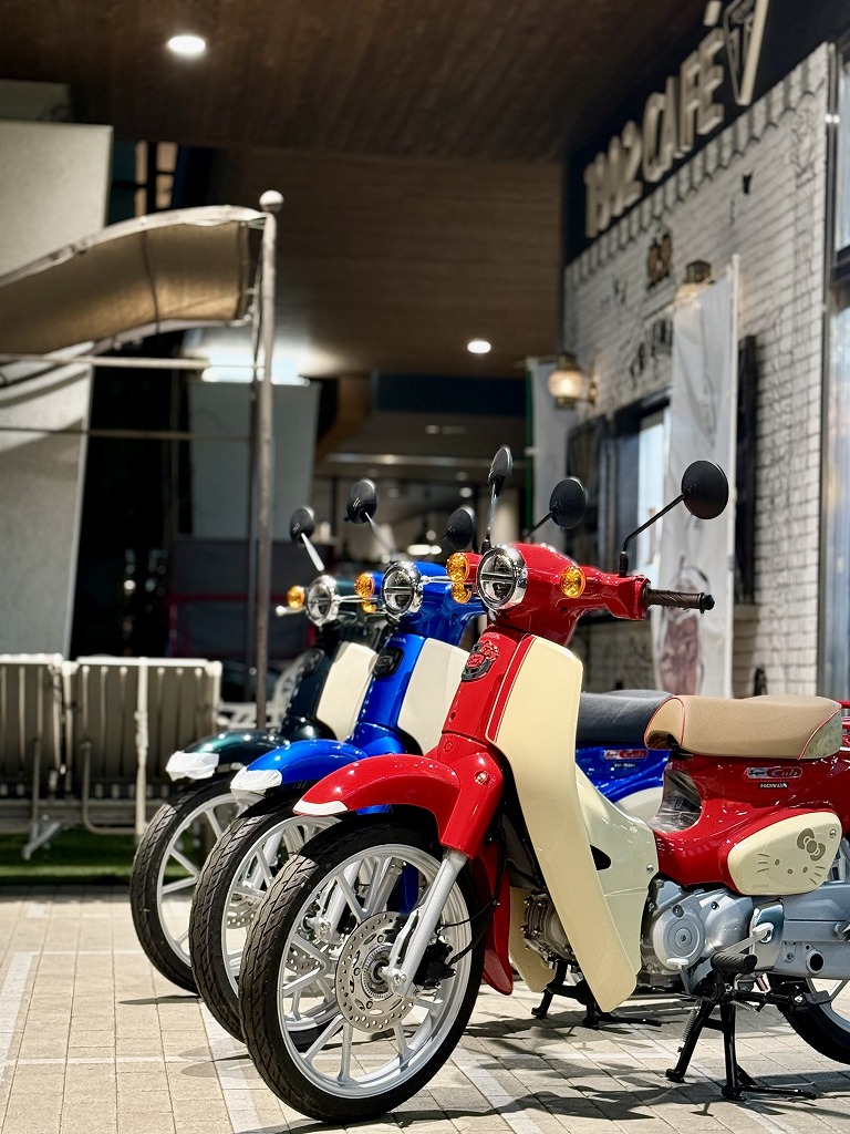 こちらは継続色のスーパーカブ110とハローキティコラボのスーパーカブ110です!