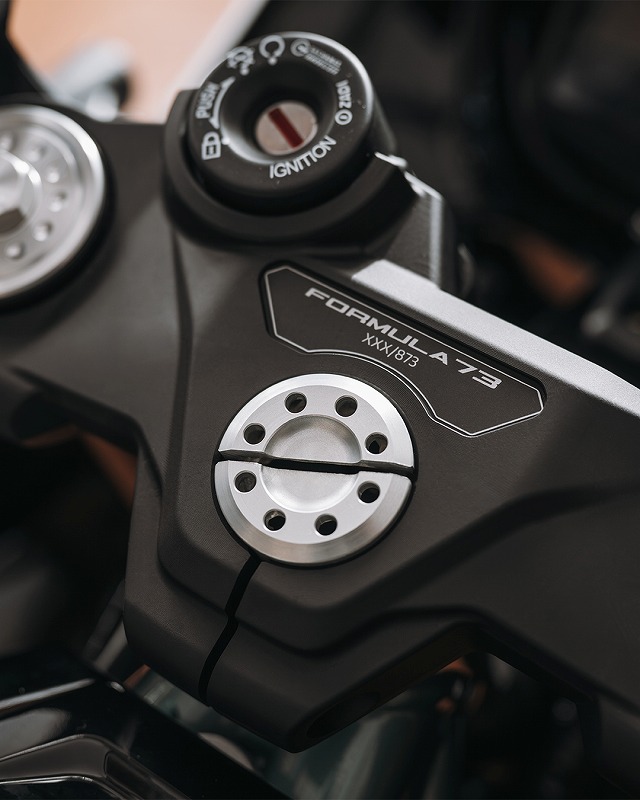 世界限定873台となるこのモデルは、ステアリングプレートにシリアルナンバーが刻印されています。