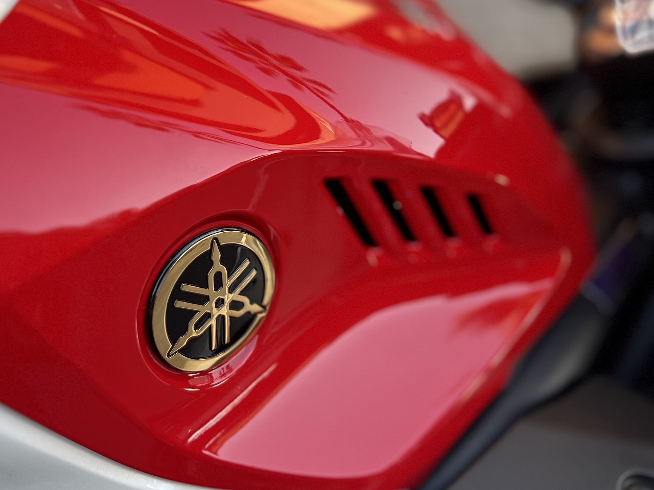 タンクサイドにはゴールドのYAMAHA音叉エンブレム