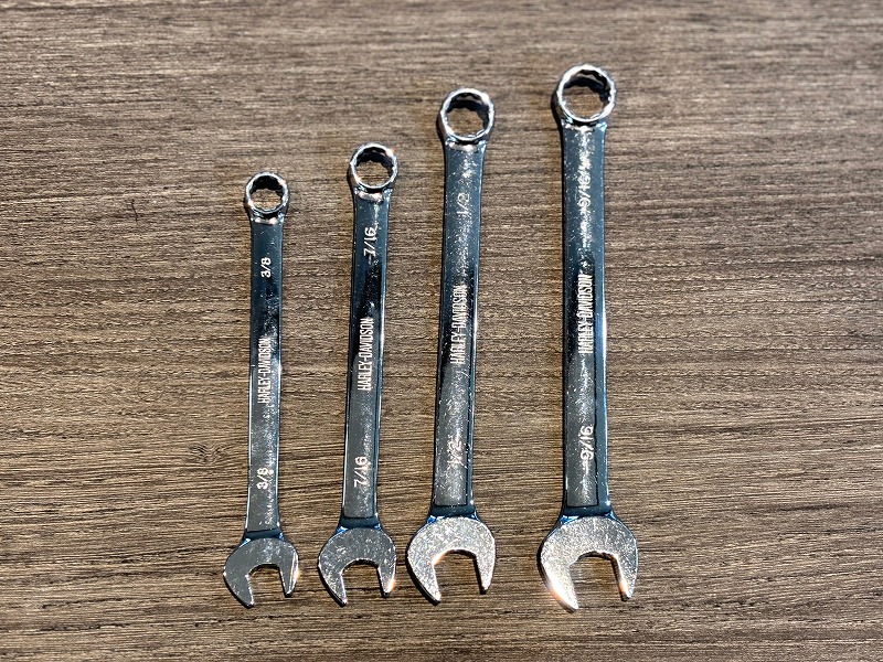 登場頻度はそこまで多くはないかと思いますが念のため。純正スイッチボックス周りの増し締めにT25・T27は必須です。六角レンチは5/32・1/4・5/16は持ち歩きましょう。特にM8ソフテイルでサイドカバー内にETCを収納している方は5/32は必須ですね。
