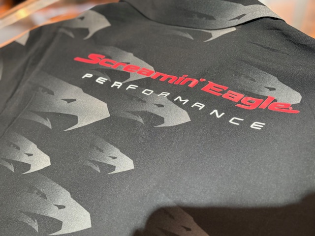 背中には「Screamin Eagle」のロゴがデザインされています。
