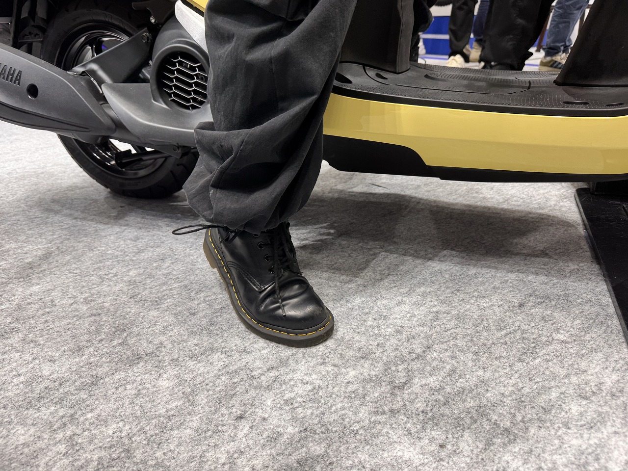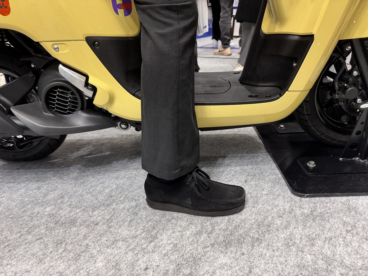 上が身長174㎝の男性スタッフ、下が身長160㎝女性スタッフが跨った足つきです!