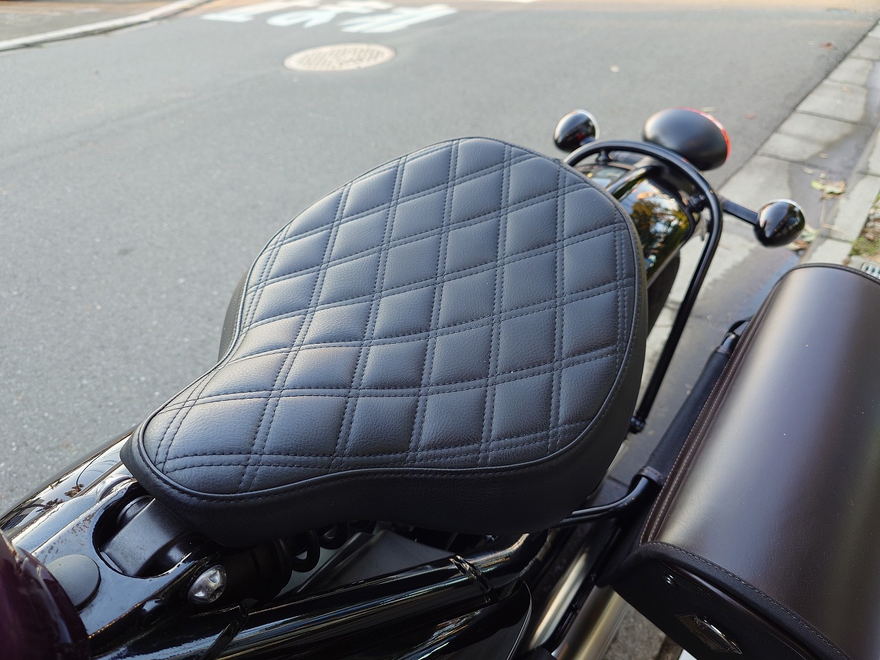 純正アクセサリーの左側サイドバック、キルトコンフォートシート