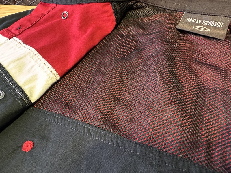内側は赤のメッシュ素材!肩と肘にボディーアーマーが備え付けられています。
